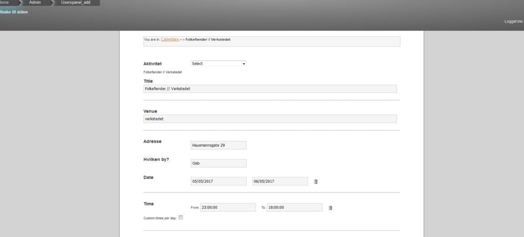 - Admin panel og bruker panel med publisering, sletting og organisering
